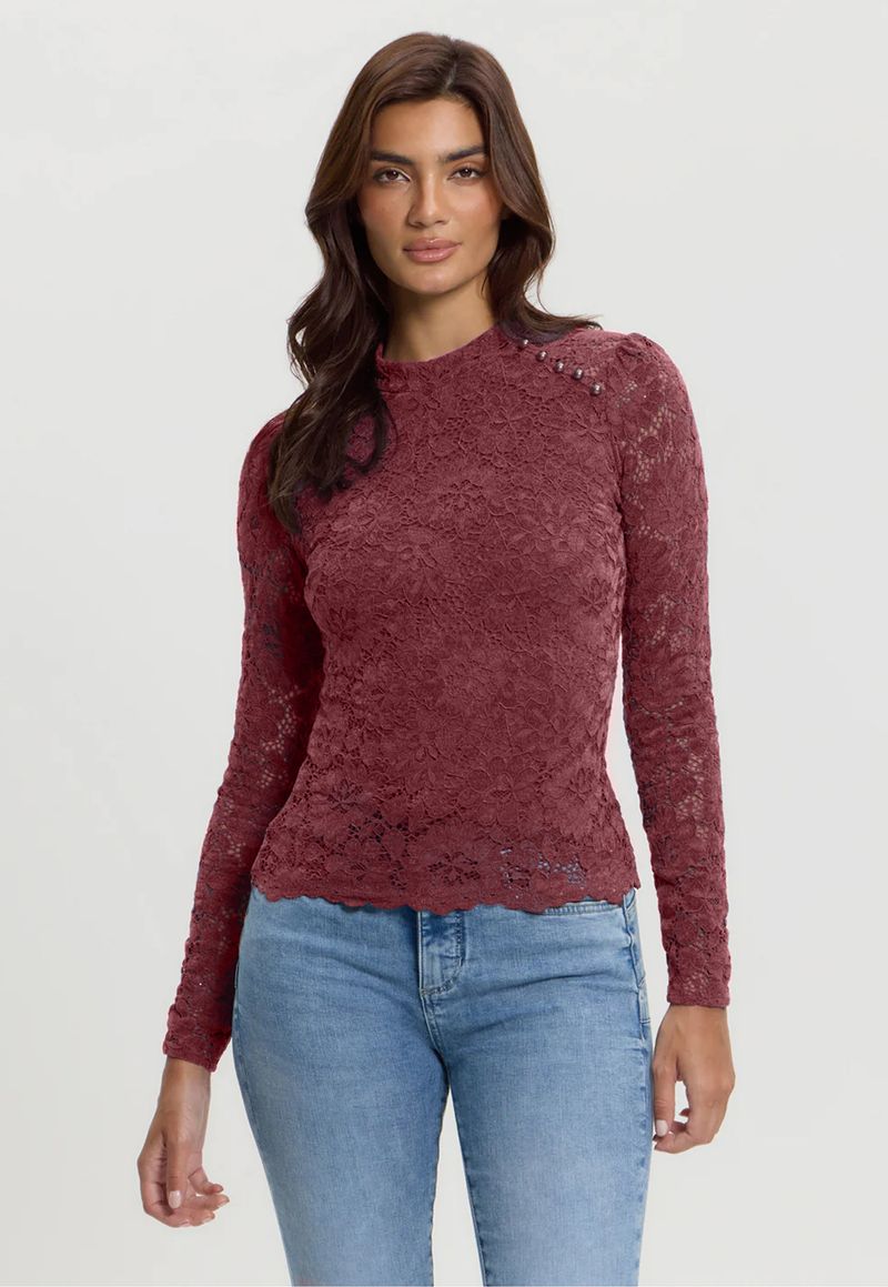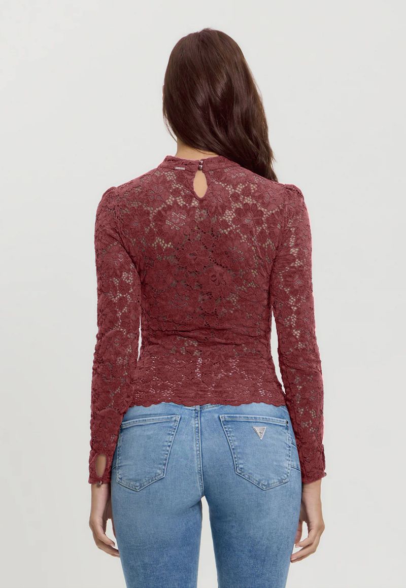 FemininoRoupasBlusasBlusas Manga LongaBlusa Guess Ml Renda Chenille Vinho