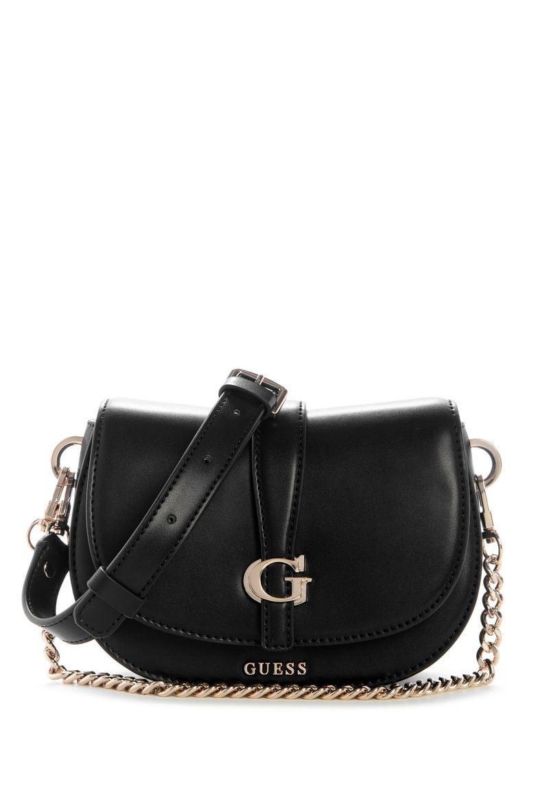 A Bolsa Mini Carrie Flap Crossbody Preto apresenta logo Guess em destaque na parte frontal, acompanhado de um elegante G decorativo. Produzida em material de poliuretano, conta com duas alças: uma de ombro feita em corrente dourada e outra transversal ajustável com fivela, garantindo versatilidade no uso. Seu fechamento em flap com ímã adiciona praticidade e estilo ao visual. O compartimento interno forrado em tecido possui dois espaços organizadores, ideal para manter seus itens bem distribuídos. Perfeita para quem busca uma bolsa pequena com detalhes sofisticados e design funcional.