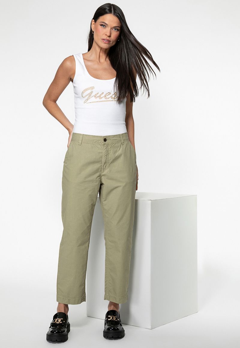 FemininoRoupasCalçasCalça RetaCalça TecidoCalça Chino Regular Straight Verde Musgo