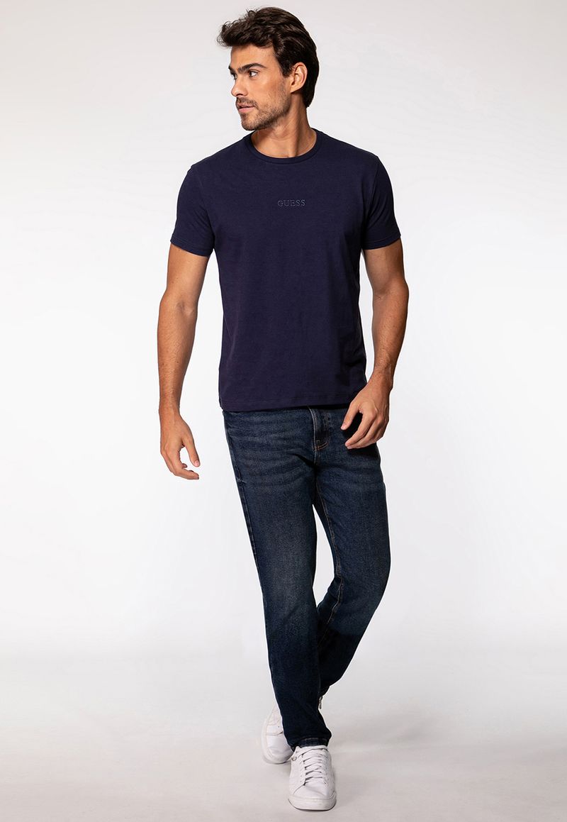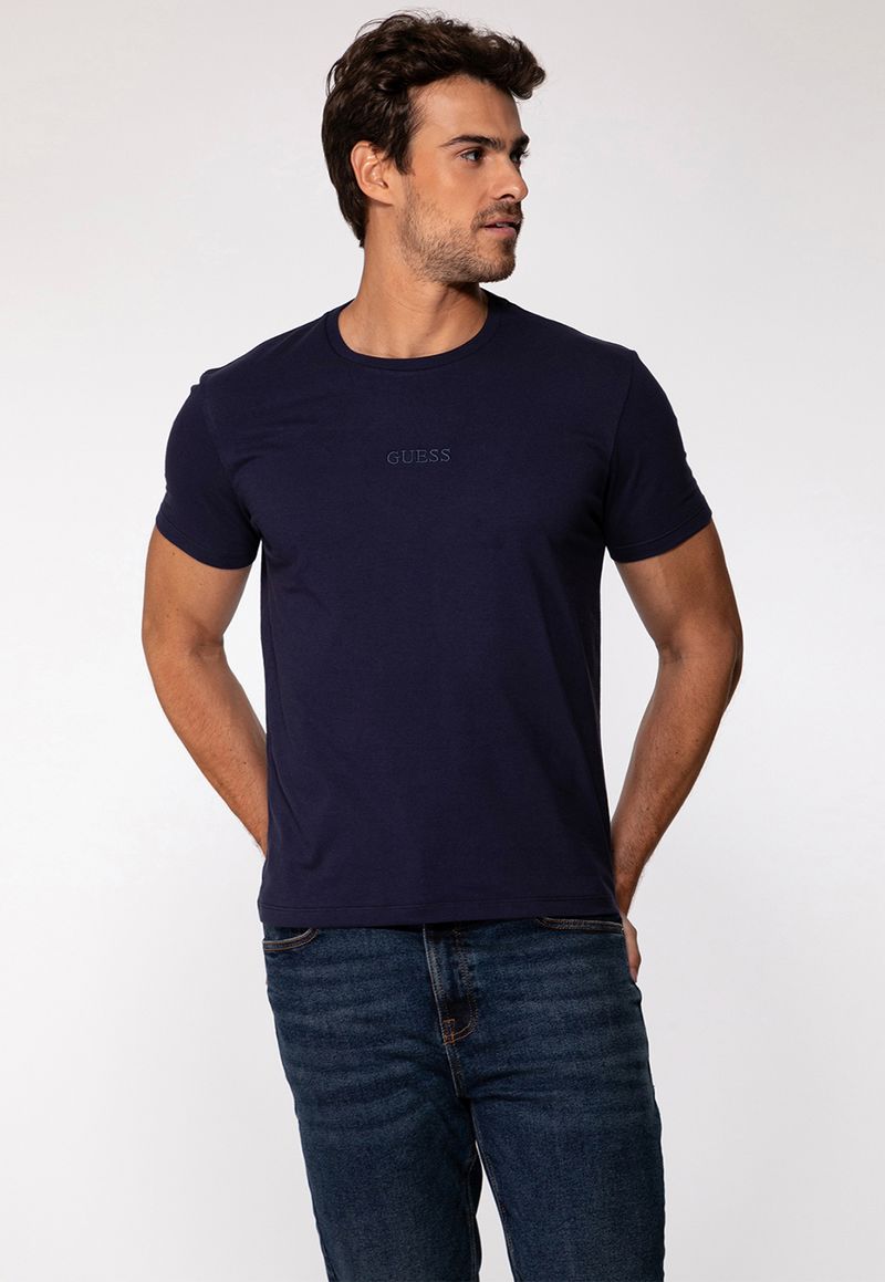 Camiseta Guess Bordado Pq Centro Azul Marinho