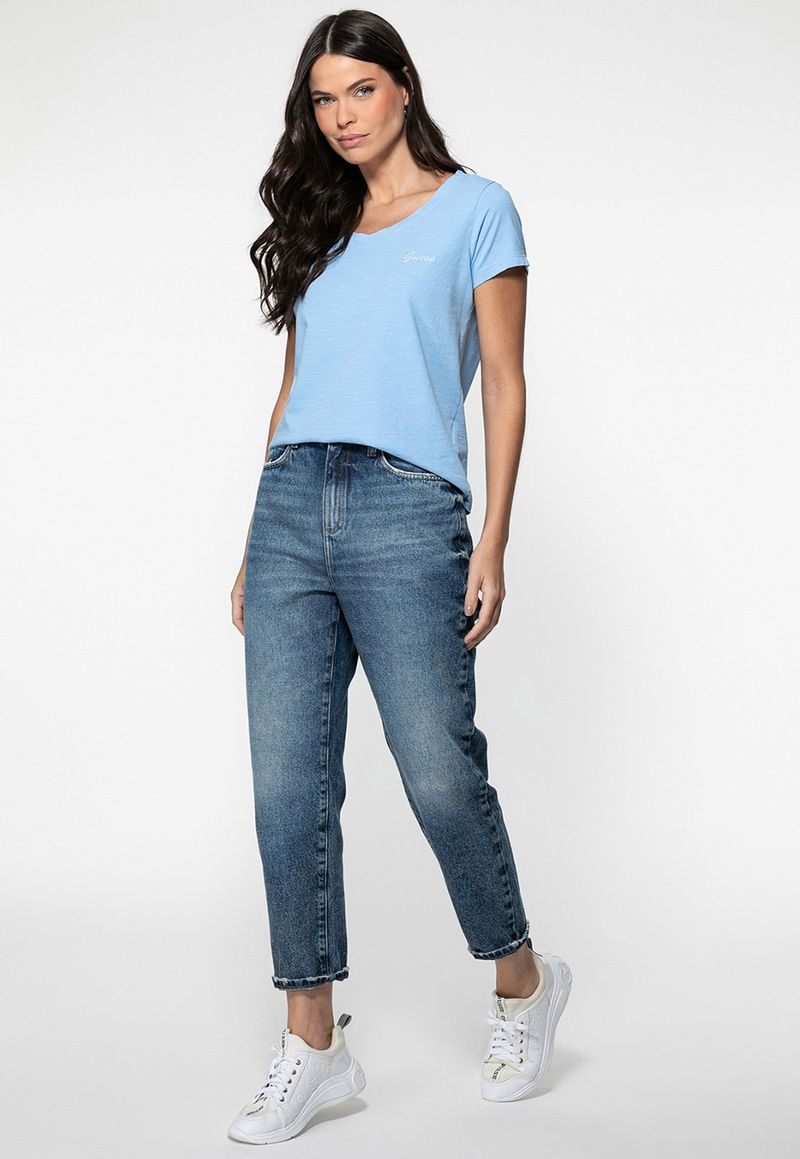 FemininoRoupasCamisetasCamiseta Manga CurtaCamiseta Guess Dec V Bordado Cursivo Azul