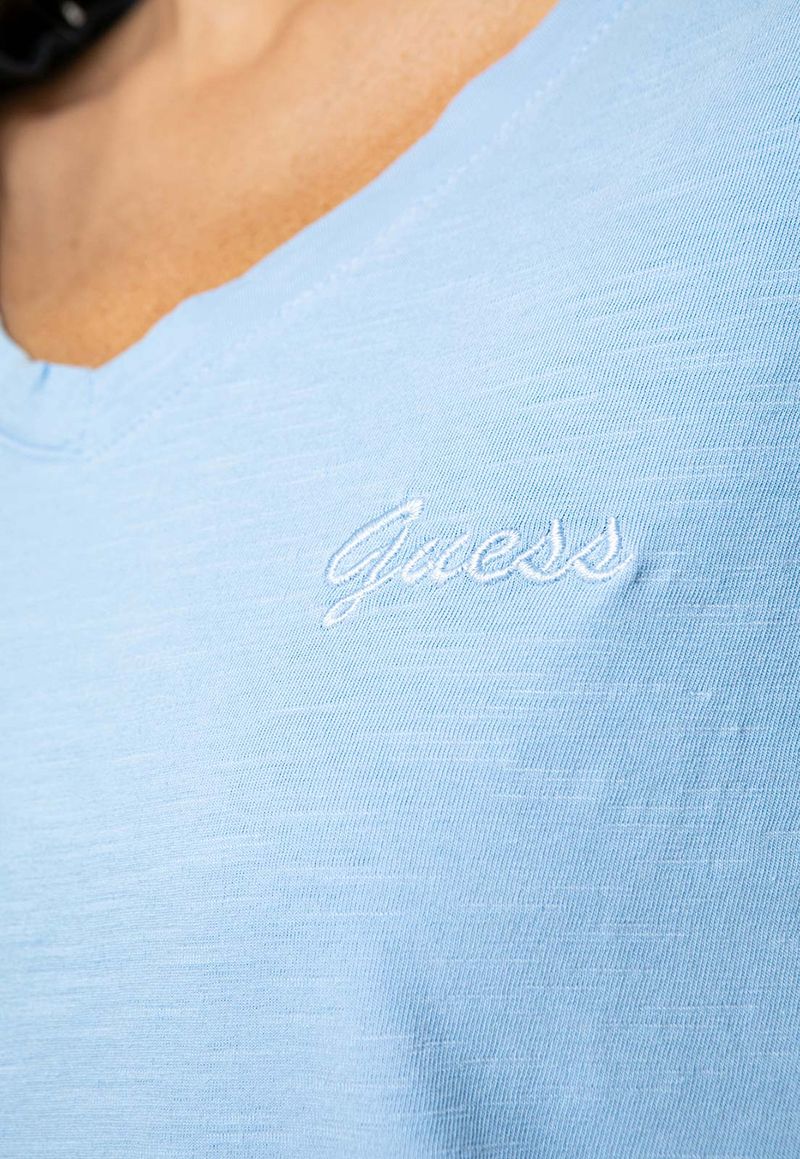 Camiseta Guess Dec V Bordado Cursivo Azul