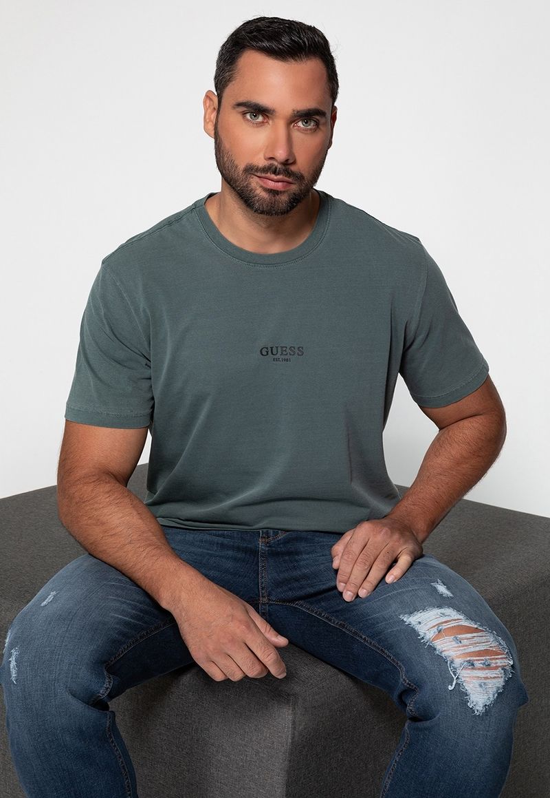 MasculinoRoupasCamisetasCamiseta Manga CurtaCamiseta Guess Silk Laser Estonada Verde Oliva