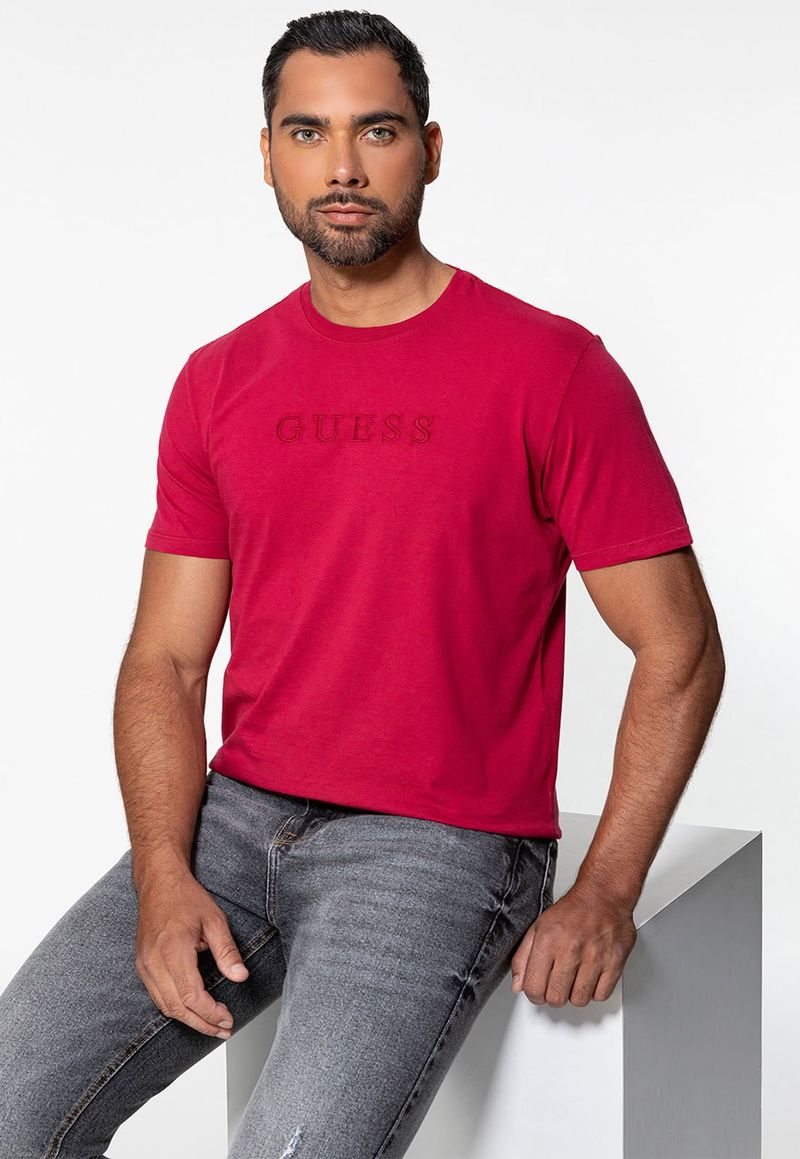 MasculinoRoupasCamisetasCamiseta Manga CurtaCamiseta Logo Bordado Guess Vermelho