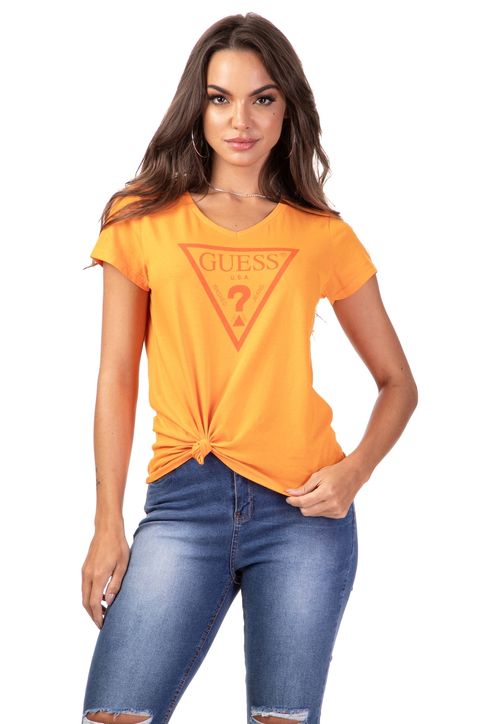 Se o seu estilo for mais descontraído, o ideal é escolher uma camiseta GUESS feminina manga curta estampada ou com grafismos e combiná-la com short jeans ou saias.