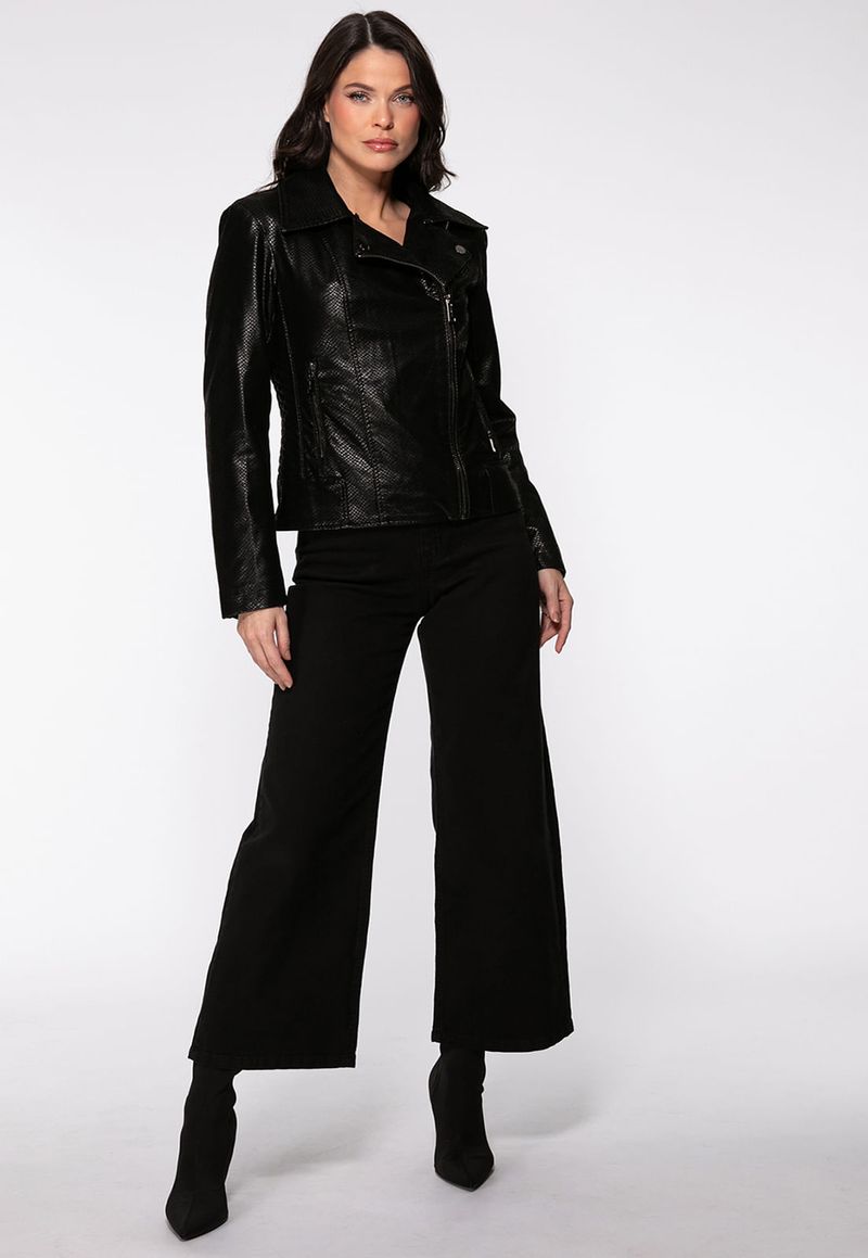 A Jaqueta Bicker Gola Pelos traz um toque ousado com sua textura python e modelagem estruturada. A gola de pelos removível adiciona versatilidade, enquanto o fechamento em zíper e os bolsos garantem praticidade e estilo.
