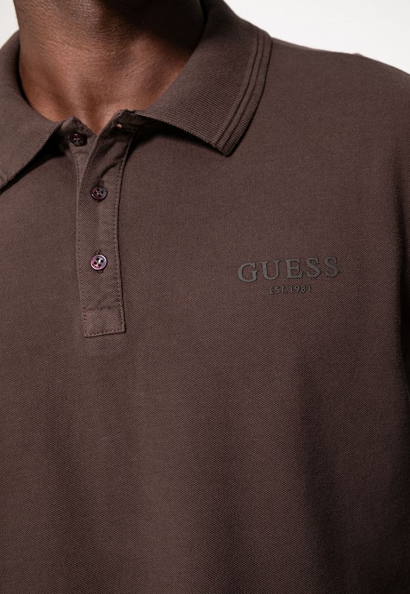 Camisa Polo Guess Silk Relevo Est 1981 Marrom