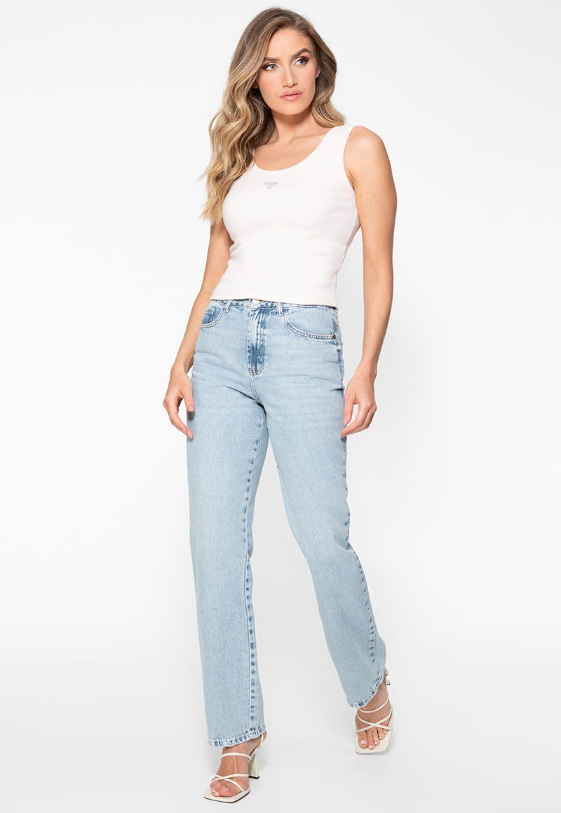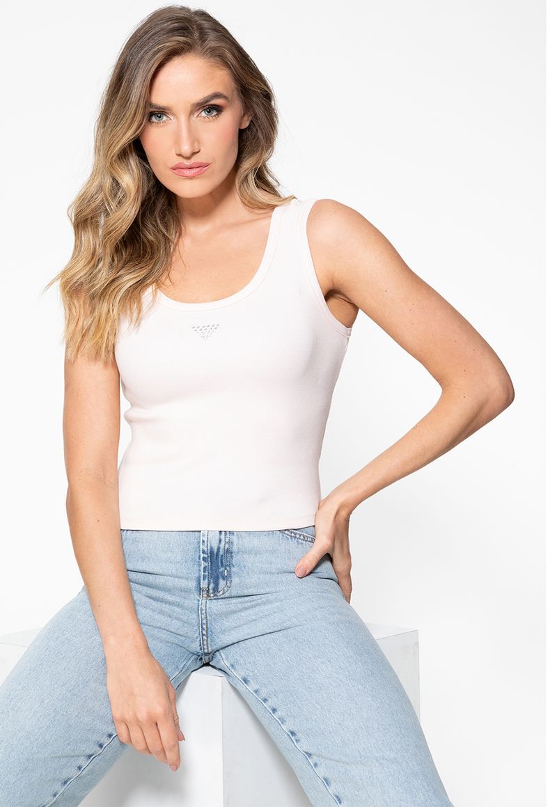 FemininoRoupasBlusasBlusas CroppedRegata Guess Rib Triang Hot Fix Cropped Rosa Claro