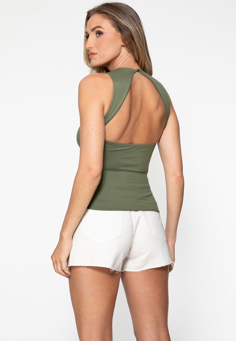FemininoRoupasBlusasRegataRegata Malha Abertura Costas Verde Escuro