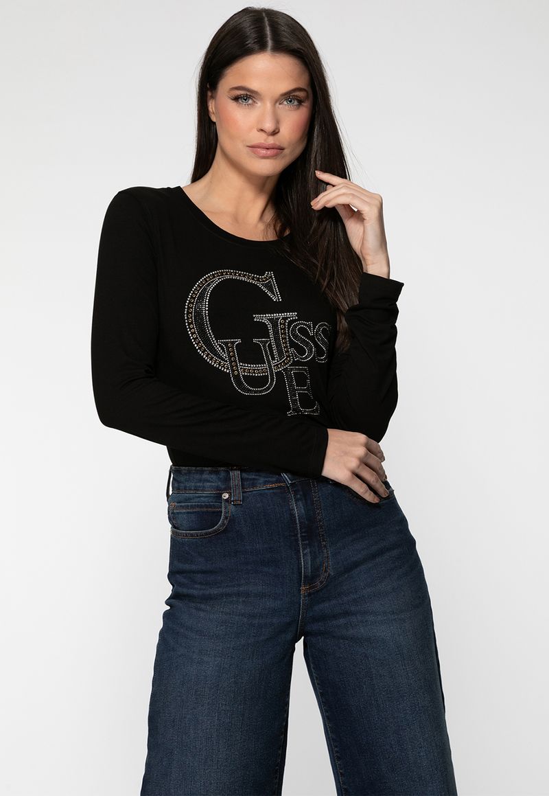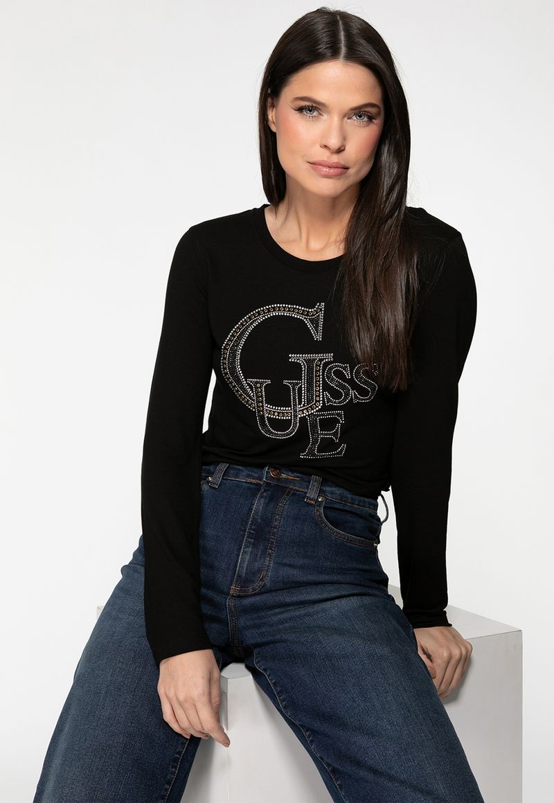 FemininoRoupasCamisetasCamiseta Manga LongaCamiseta Manga Longa GUESS Hotfix Preto