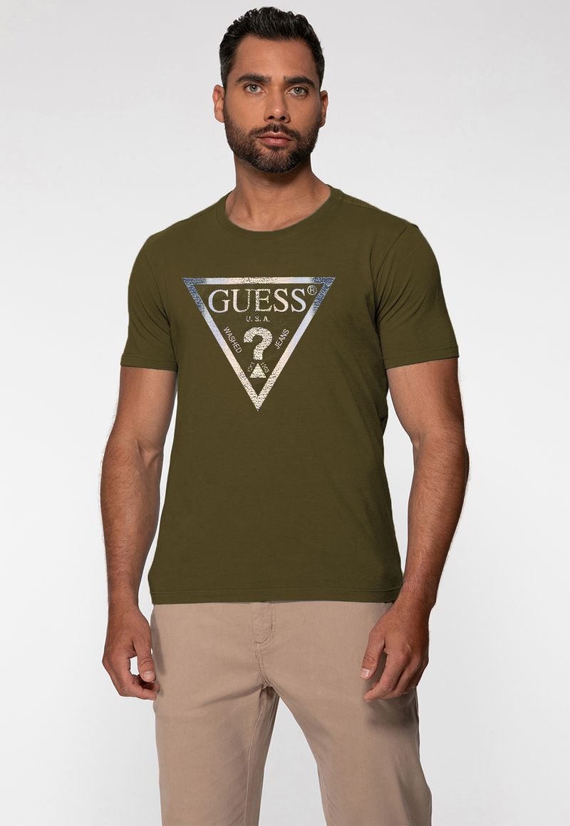 MasculinoRoupasCamisetasCamiseta Manga CurtaT-shirt Guess Triang Estampado Verde Oliva