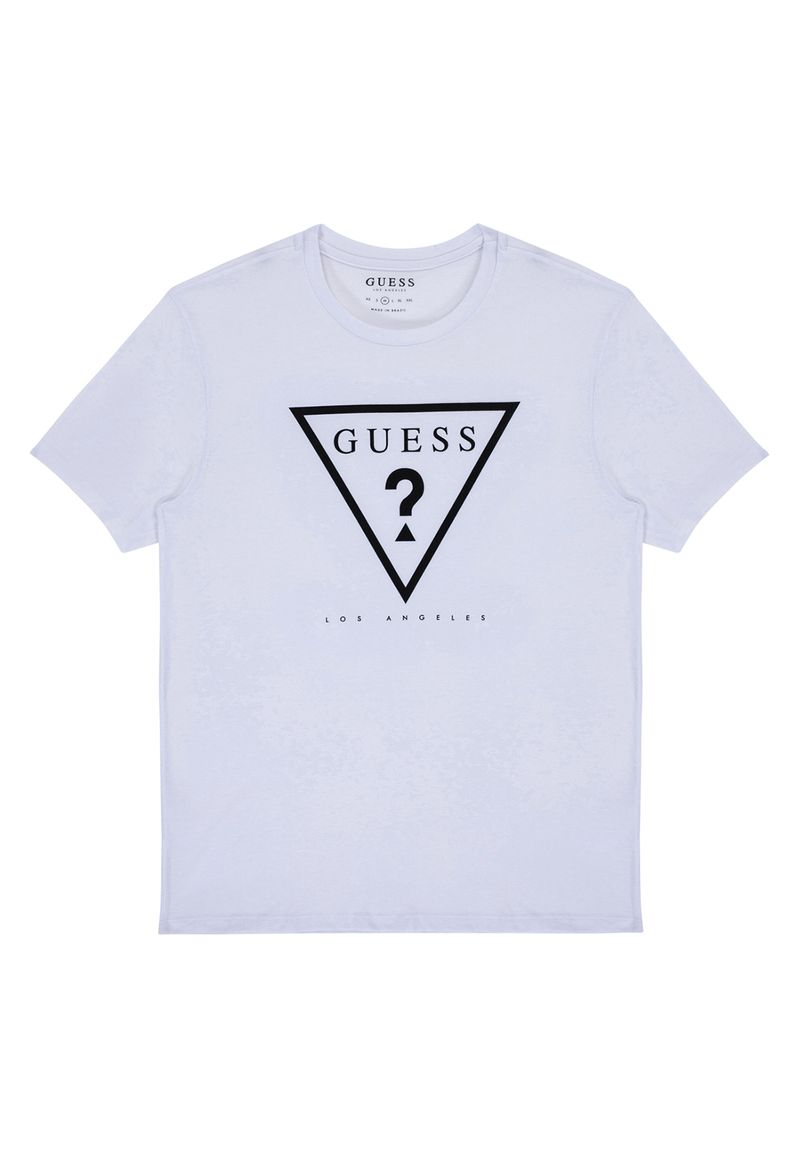 O destaque da peça fica por conta do clássico logo triangular Guess, estampado em silk na parte frontal, que adiciona identidade e personalidade ao visual. O decote careca complementa o design com um acabamento tradicional e fácil de combinar com diferentes peças.