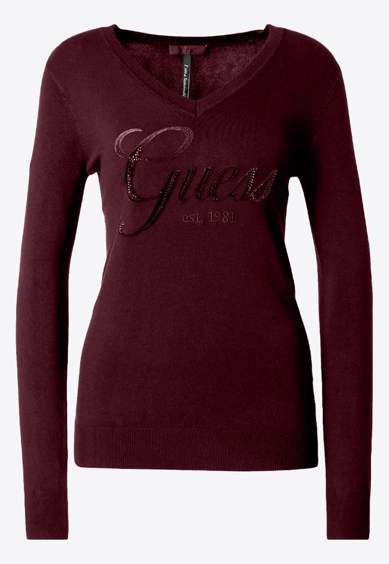 FemininoRoupasBlusasTricots e SuéteresSuéterBlusas Manga LongaSuéter de Tricot Guess Dec V Bordado E Hot Fix Vinho